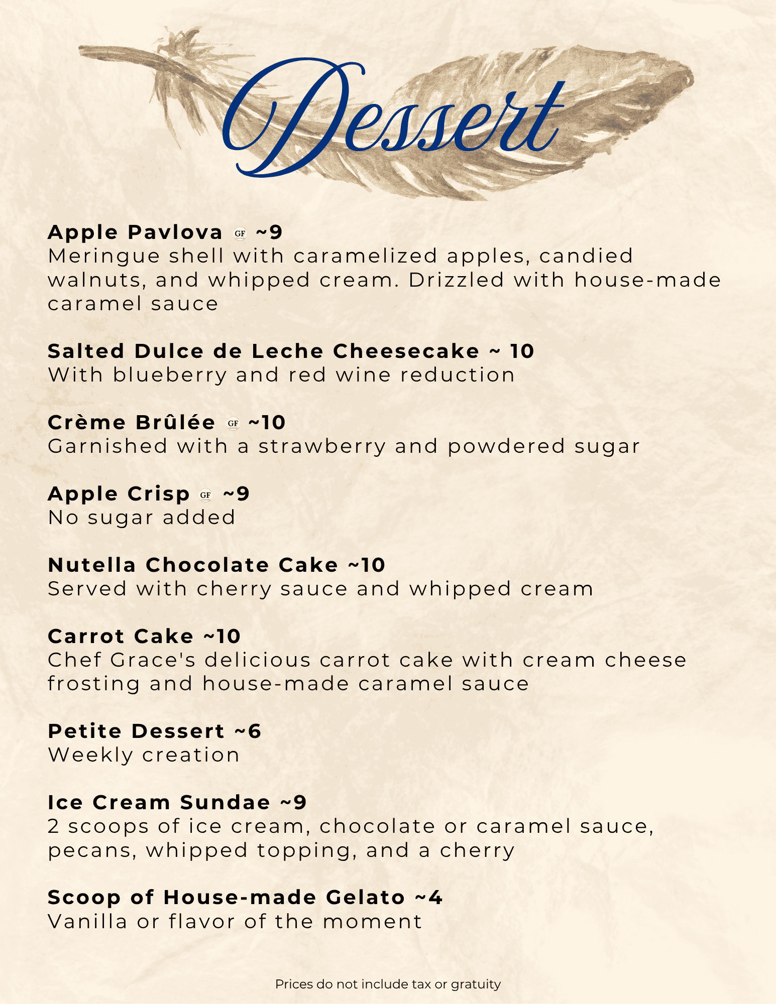 Dessert Menu - November 2025