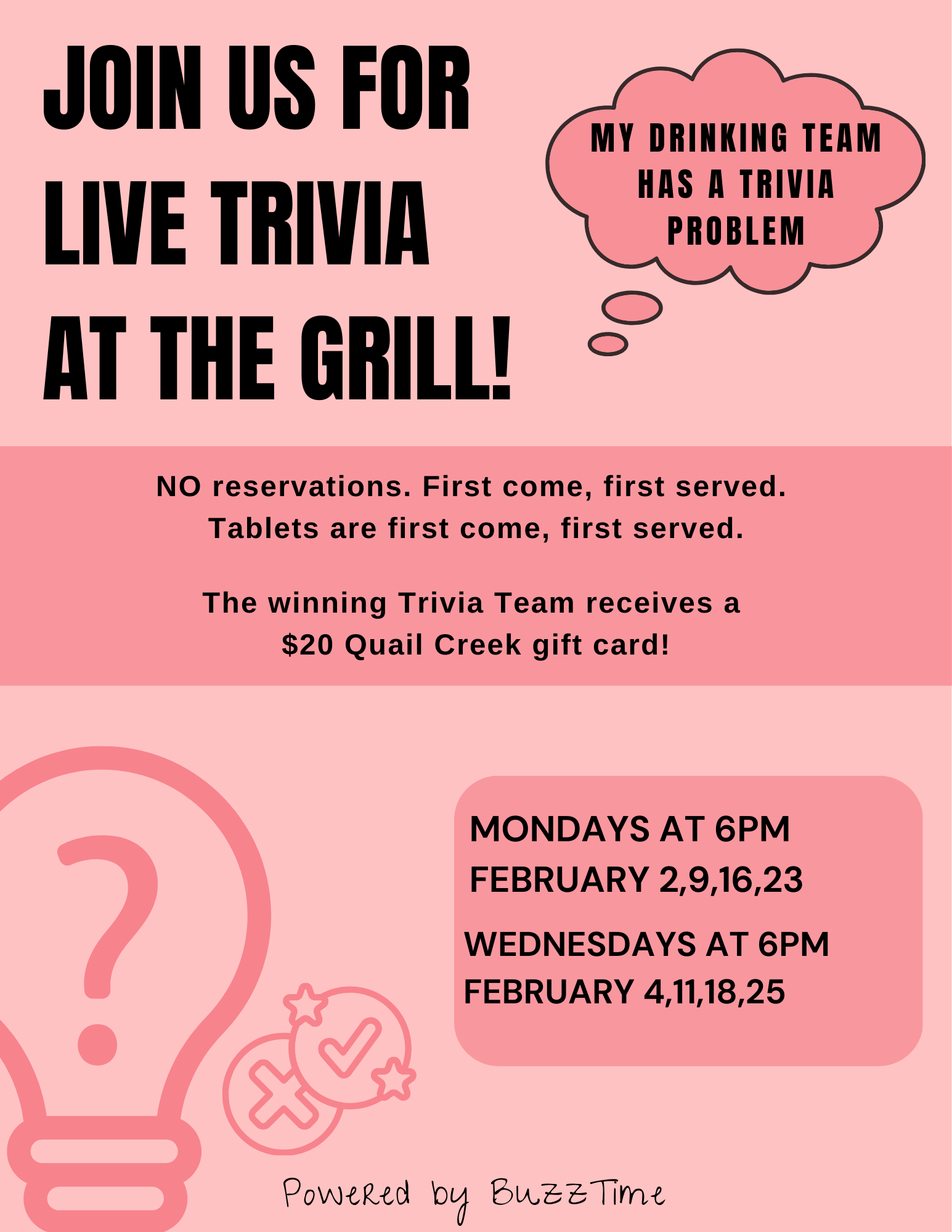 The Grill at Quail Creek is truly a delightful centerpiece, a gathering place where neighbors come to catch up on conversation or plan that next big adventure. You’ll enjoy the indoor & outdoor dining areas, board room with fireplace for private parties, and a U-shaped bar for enjoying happy hours with friends.